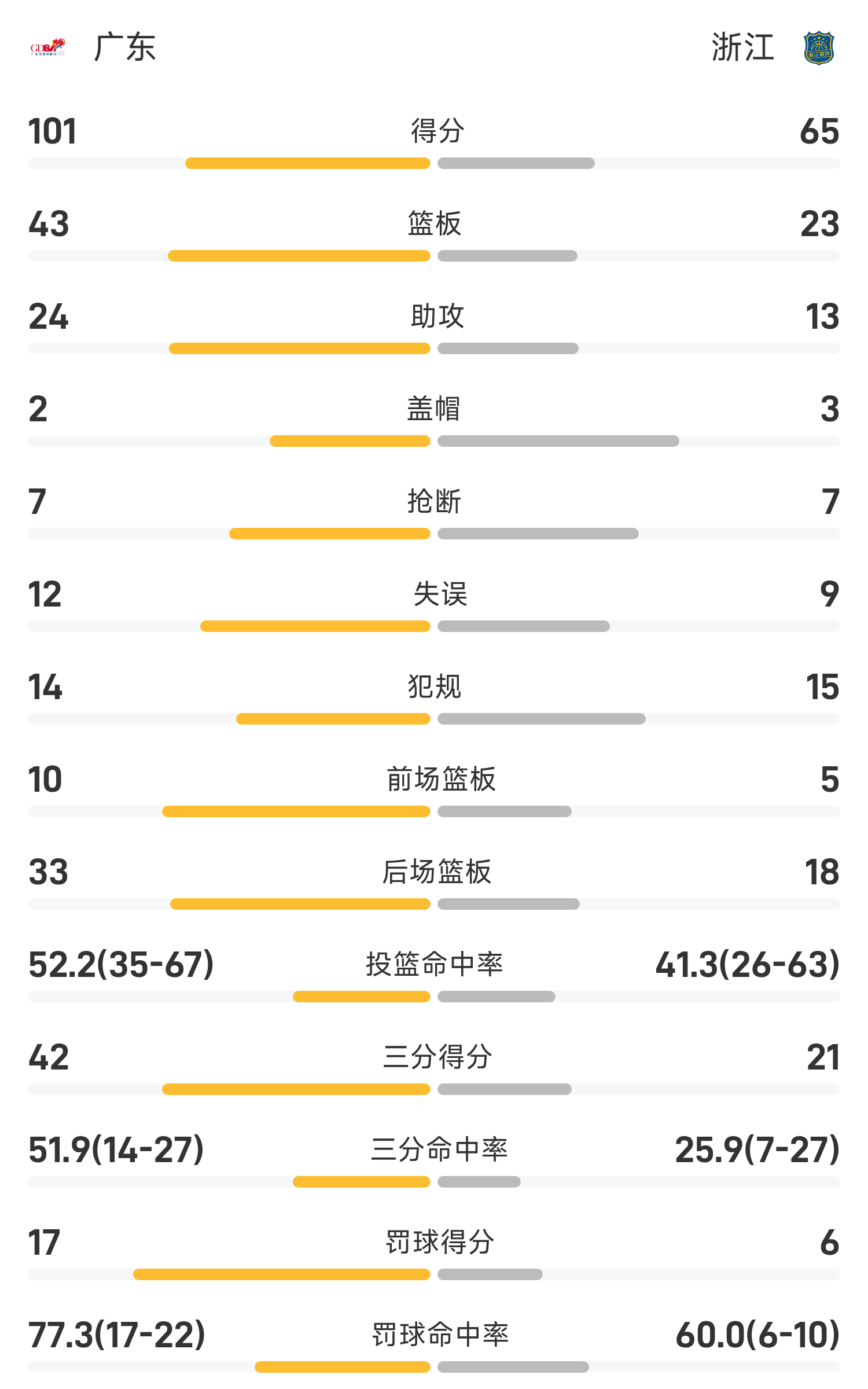 全运男篮总决赛:徐杰18分7板6助,广东101-65狂胜浙江夺金牌