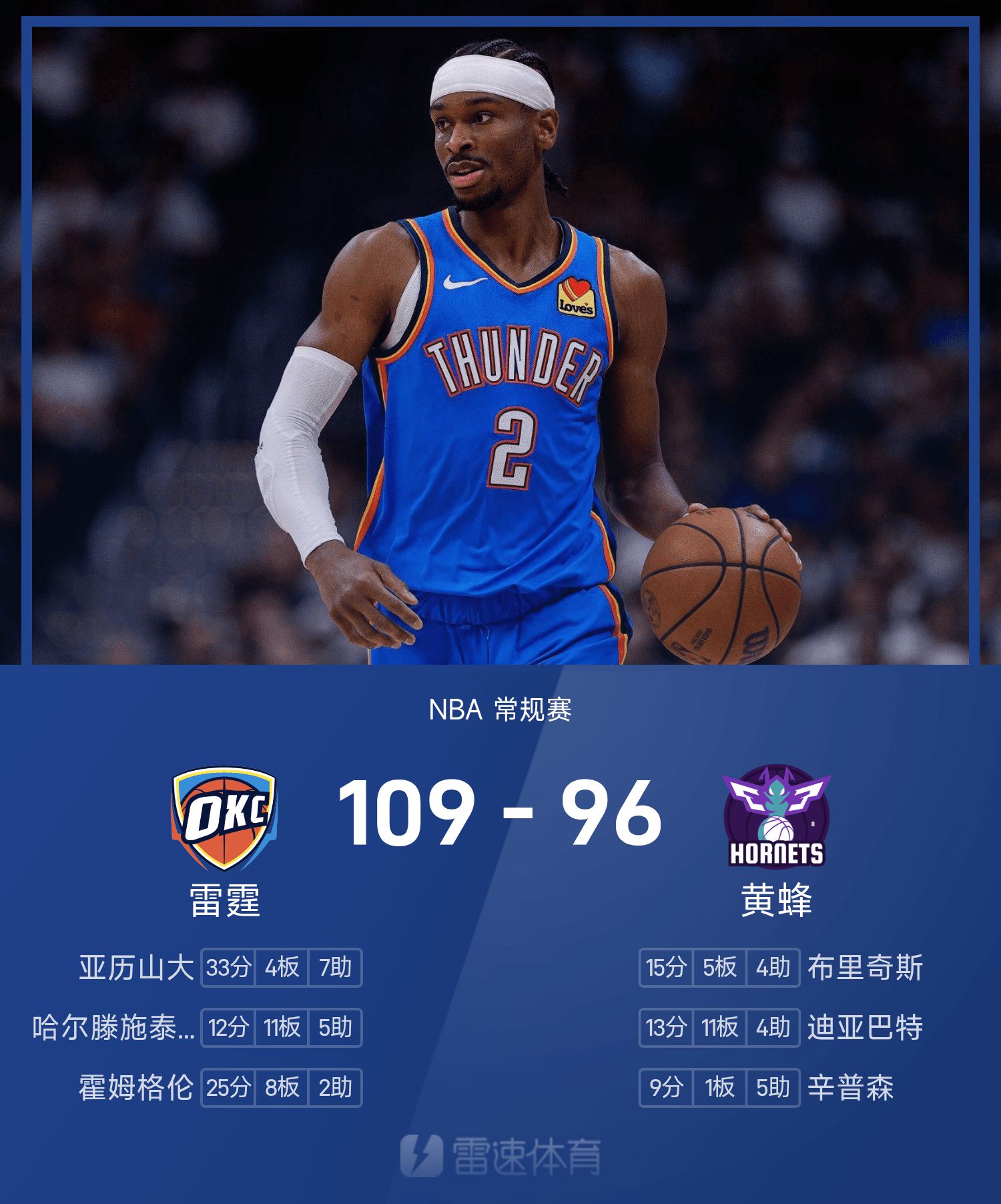 亚历山大爆轰33分,雷霆取得开季13胜1负的骄人战绩。