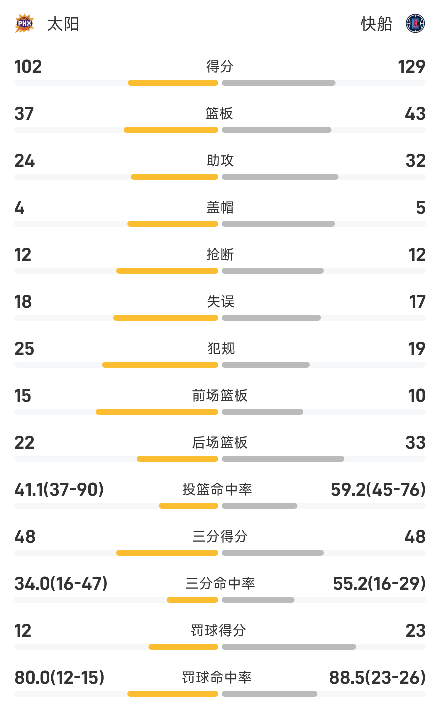 NBA战报:哈登30分7板7助,快船129-102大胜太阳