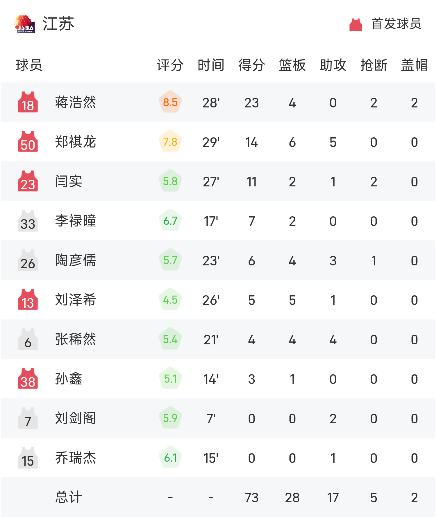 6686体育11月06日讯 全运男篮 分组赛,江苏对阵广东。双方全场战罢,江苏73-96不敌广东。徐杰砍下全场最高的29分3板5助,率领广东胜利取胜,江苏半场保持领跑位但第三节仅得9分。