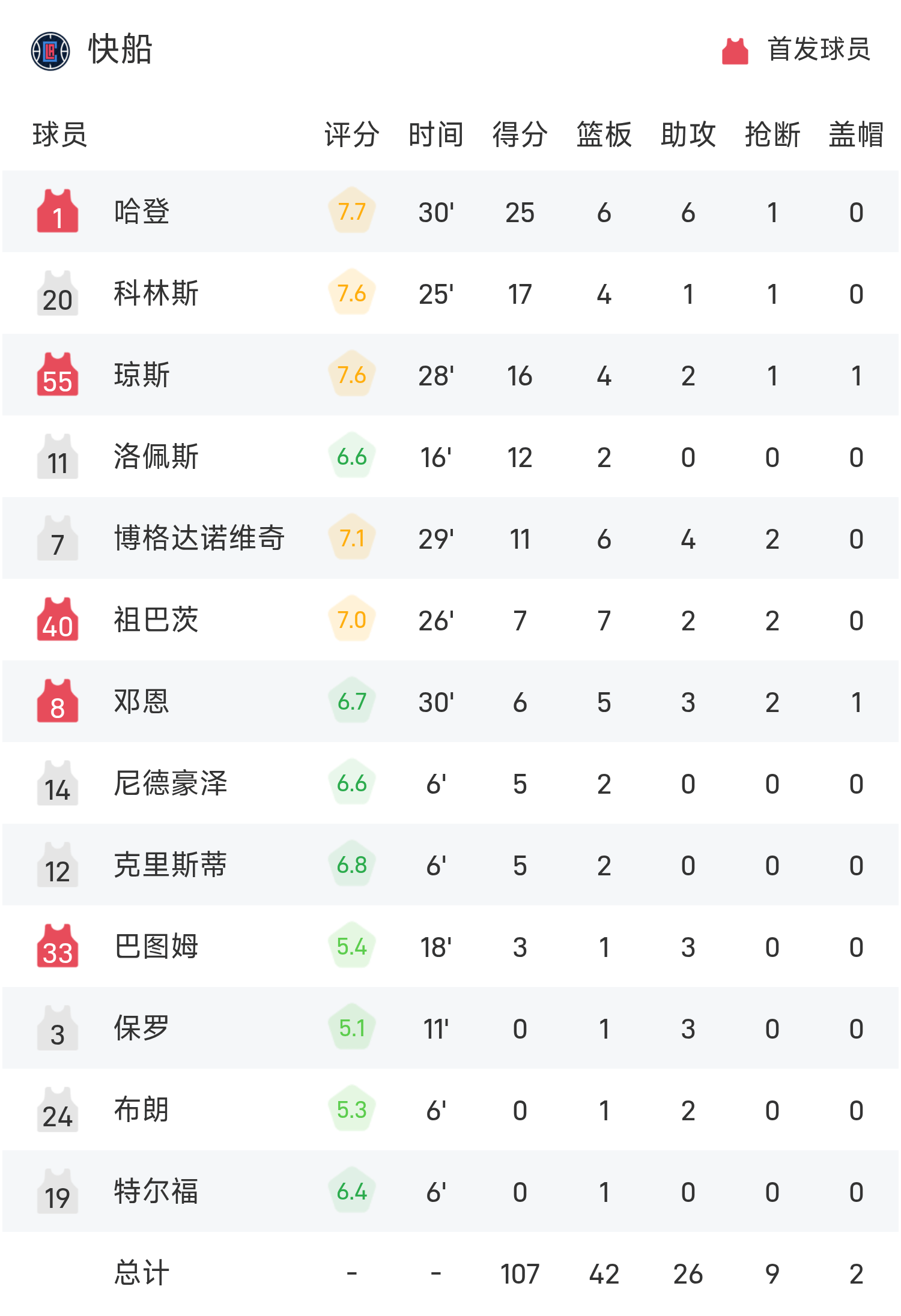 6686体育11月05日讯 25/26赛季NBA 常规赛,快船对阵雷霆。双方全场战罢,快船107-126不敌雷霆。亚历山大砍下全场最高的30分4板12助,率领雷霆胜利取胜,雷霆取得了开季8连胜。