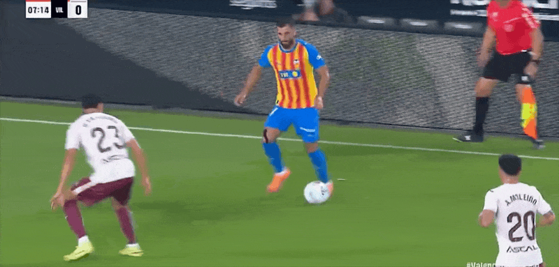 瓦伦西亚首发阵容:25-阿吉雷扎巴拉、14-加亚(61’21-巴斯克斯)、12-科雷亚(83’19-拉瓦)、3-科佩特、5-塔雷加、18-佩佩卢(83’22-桑塔玛利亚)、7-丹朱玛、11-里奥哈、8-格拉(61’10-阿尔梅达)、15-贝尔特兰(46’9-杜罗)、16-洛佩斯