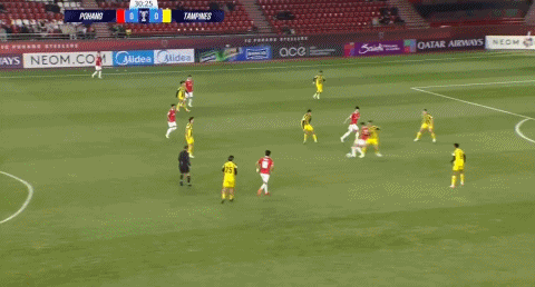 87’赵尚赫跟进射门破门,浦项铁人扳平赛果分,暂1-1淡滨尼流浪者