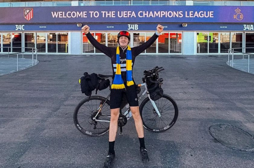 一名圣吉罗斯球迷10天骑行1570公里,观赏欧冠客战马竞